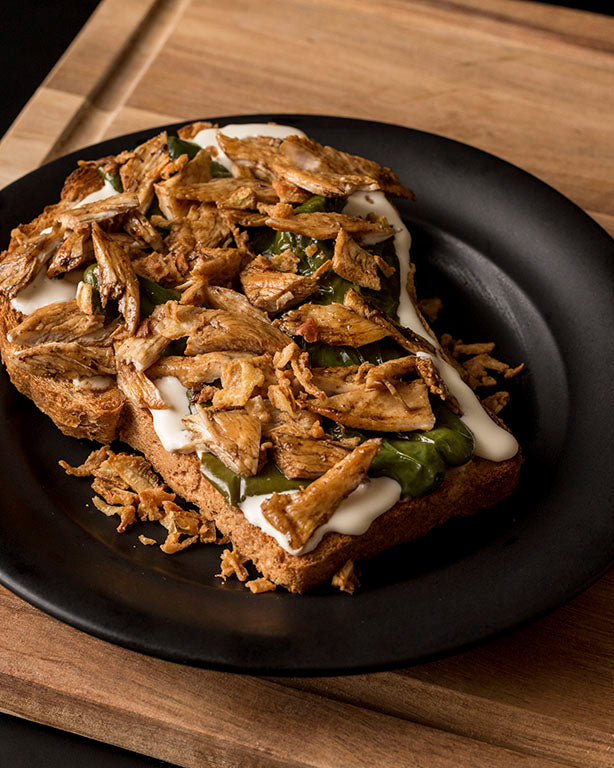 Toast with Bacon or Serrano Ham (raw or grilled, as you like) and grilled Green Pepper. Contains gluten .